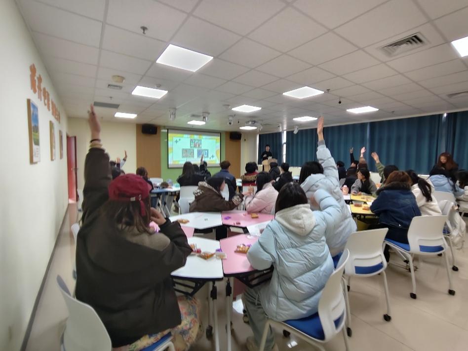 游戏过程中,老师严格按照规则组织,各小组推选代表答题,答对得分、答错不扣分,还能向组员求助,既考验了大家的知识储备,又培养了团队协作能力。为了增加趣味性,还设置了等级奖励,根据各小组猜对次数评选出排名,让同学们在游戏中收获成就感。大家全神贯注参与其中,暂时忘却了开学的焦虑与学业的压力,脸上都洋溢着开心的笑容,彼此间的交流也多了起来,陌生感逐渐消散,凝聚力也在欢声笑语中悄然提升。