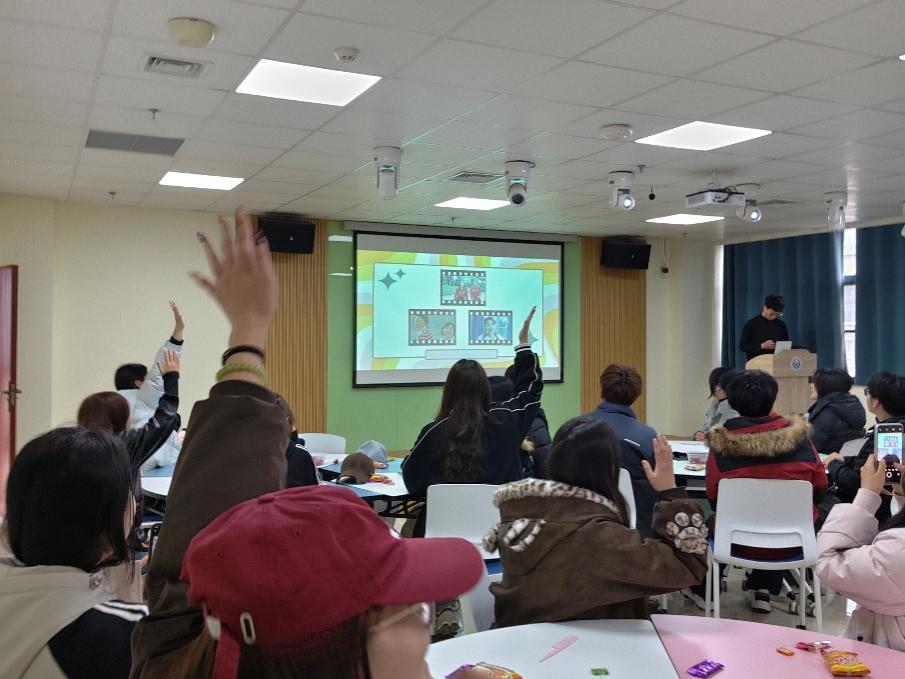 本次心理团体辅导活动以趣味游戏为核心载体,贴合同学们的兴趣喜好设计互动环节,瞬间点燃了学生热情。同学们以小组为单位展开比拼,在看图猜热梗环节,经典的网络热梗图片一经展示,大家便争相抢答,“你是来拉屎的吧”“臣妾做不到啊” 等熟悉的台词脱口而出,现场笑声不断;看图片猜电影环节,从经典的《大话西游》《肖申克的救赎》到热门的《流浪地球》《消失的她》,同学们凭借对电影的了解快速作答,小组间的比拼紧张又有趣;听歌猜动画片环节,熟悉的《海绵宝宝》《喜羊羊与灰太狼》《黑猫警长》等旋律响起,瞬间勾起童年回忆,大家纷纷举手,精准说出动画名称,活动氛围一次次推向高潮。