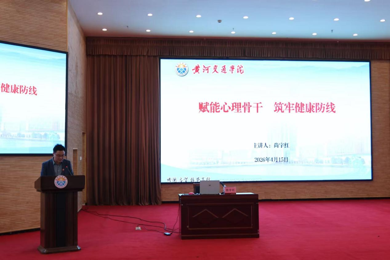 为深入贯彻《教育强国建设规划纲要(2024—2035 年)》,全面落实“健康第一”教育理念,扎实推进健康交院、平安交院建设,进一步提升我校心理育人工作实效,4月15日下午,我校在西校区大学生活动中心三楼学术报告厅成功举办《赋能心理骨干 筑牢健康防线》心理健康教育专题培训。本次培训由学生处心理健康教育中心、大学生成功中心联合主办,心理健康教育中心主任张斌主持讲座并致辞,特邀河南省心理健康教育名师工作室主持人、河南工业大学尚宇红教授主讲。各二级学院团委书记、心理辅导站心理专干、全体专兼职辅导员及全校班级班长、心理委员800余人参加培训。